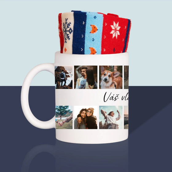 Fotokoláž: 14 Fotek - Zimní ponožky v hrnku