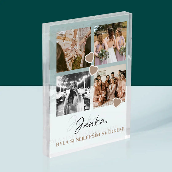 159 KčJednotková cena /Není k dispoziciFotokoláž: Děkovná Koláž Pro Svědka - Akrylový blok srdce