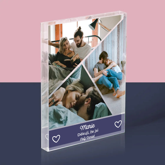159 KčJednotková cena /Není k dispoziciFotokoláž: Děkuji, Že Jsi - Akrylový blok srdce
