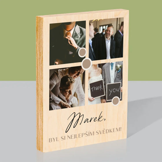 379 KčJednotková cena /Není k dispoziciFotokoláž: Děkovná Koláž Pro Svědka - Tisk na dřevo - vertikální