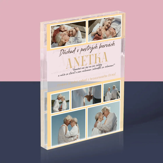 1.080 KčJednotková cena /Není k dispoziciFotokoláž: Důchod V Pestrých Barvách - Akrylový blok - vertikální