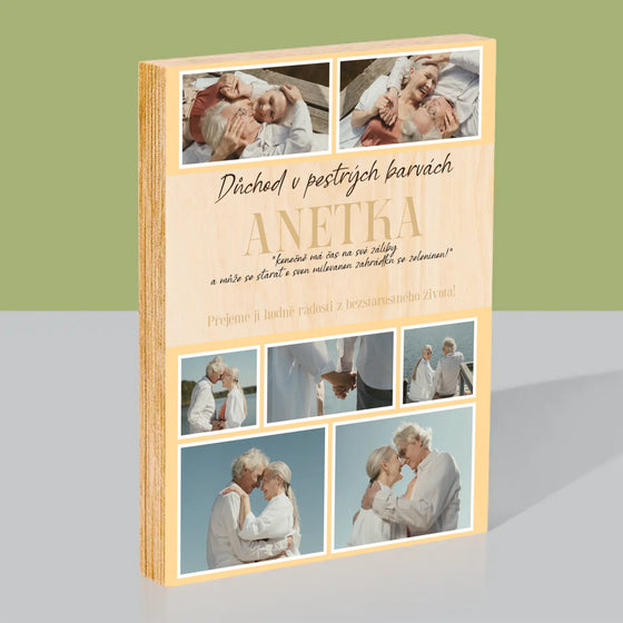 419 KčJednotková cena /Není k dispoziciFotokoláž: Důchod V Pestrých Barvách - Tisk na dřevo - vertikální