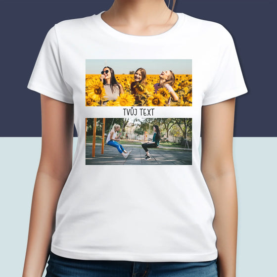 99 KčJednotková cena /Není k dispoziciFotokoláž: 2 Fotky A Nápis - Damské tričko