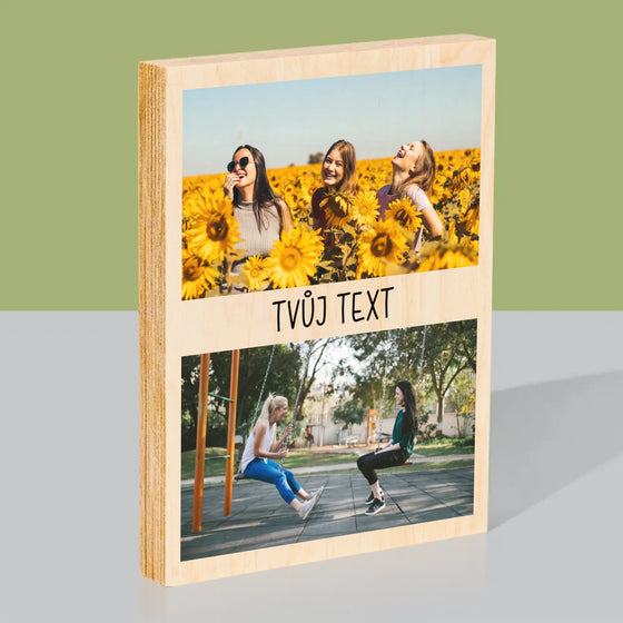 299 KčJednotková cena /Není k dispoziciFotokoláž: 2 Fotky A Nápis - Tisk na dřevo - vertikální