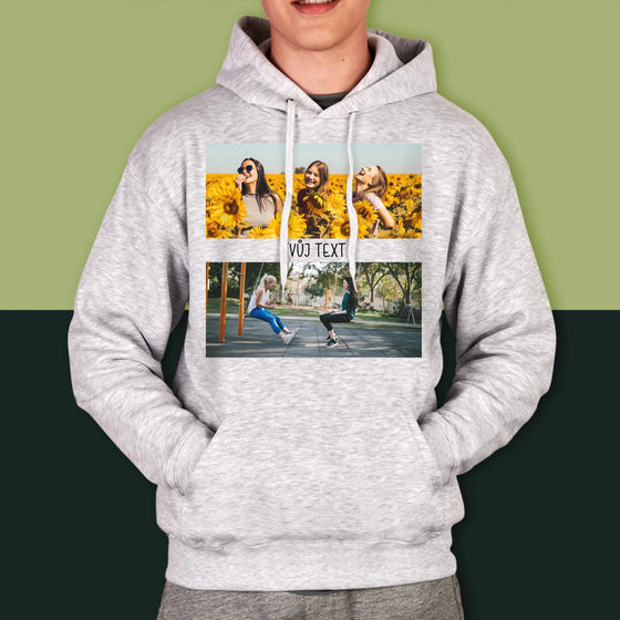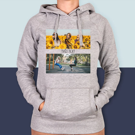 709 KčJednotková cena /Není k dispoziciFotokoláž: 2 Fotky A Nápis - Dámská mikina s kapuci