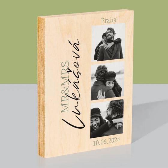 379 KčJednotková cena /Není k dispoziciFotokoláž: Mr&Mrs Datum - Tisk na dřevo - vertikální