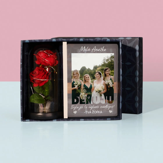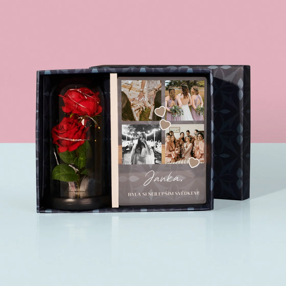 859 KčJednotková cena /Není k dispoziciFotokoláž: Děkovná Koláž Pro Svědka - Dárková sada s tiskem na akrylovém skle a věčnou růží