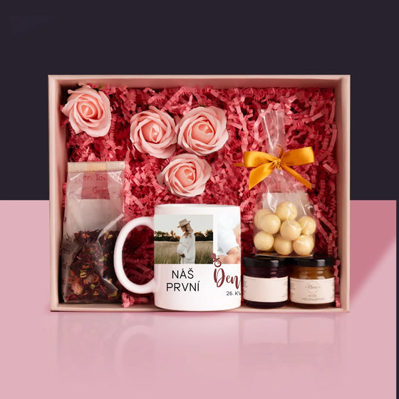 649 KčJednotková cena /Není k dispoziciFotokoláž: Náš První Den Matek - Dárková sada s hrnkem, čajem a sladkostmi