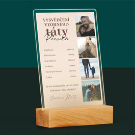 499 KčJednotková cena /Není k dispoziciFotokoláž: Vysvědčení Vzorné Táty - Tisk na akrylátové sklo LED