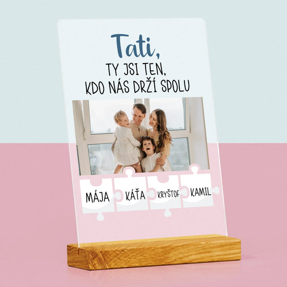 499 KčJednotková cena /Není k dispoziciFotka A Textem: Tati, Ty Jsi Ten, Kdo Nás Drží Spolu - Tisk na akrylovém skle LED