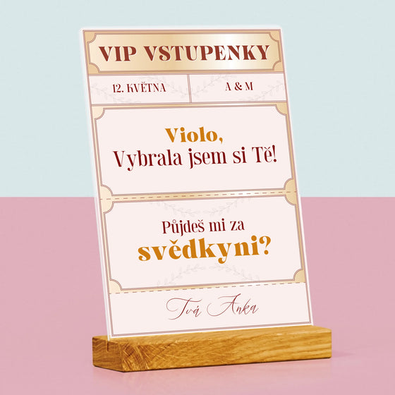 699 KčJednotková cena /Není k dispoziciJméno A Nápis: Vip Vstupenky Svědkyně - Tisk na akrylovém skle