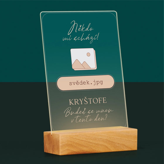 499 KčJednotková cena /Není k dispoziciJméno A Nápis: Někdo Mi Schází Svědek - Tisk na akrylátové sklo LED