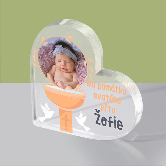 649 KčJednotková cena /Není k dispoziciFotka A Textem: Na Památku Svatého Křtu - Akrylový blok srdce