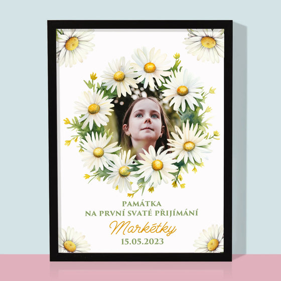 619 KčJednotková cena /Není k dispoziciFotka A Textem: Památka Na Svaté Přijímání Sedmikrásky - Tisk v rámečku