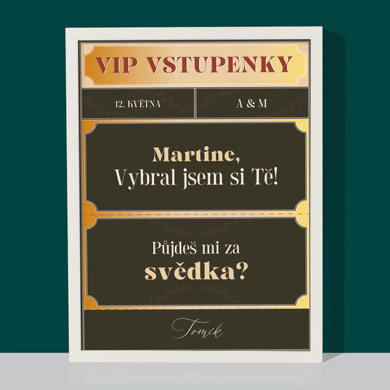619 KčJednotková cena /Není k dispoziciJméno A Nápis: Vip Vstupenky Svědek - Tisk v rámečku