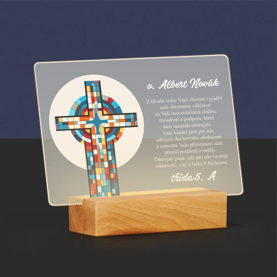 499 KčJednotková cena /Není k dispoziciJméno A Nápis: Poděkování Kříž - Tisk na akrylovém skle LED