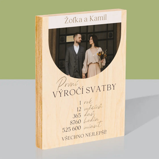 489 KčJednotková cena /Není k dispoziciFotka A Textem: První Výročí Svatby - Tisk na dřevo - vertikální