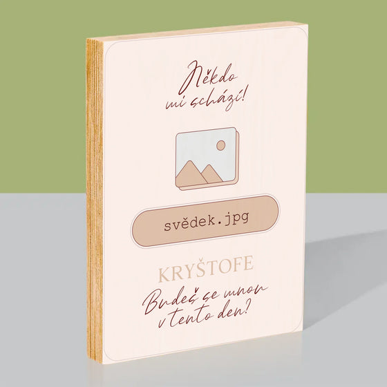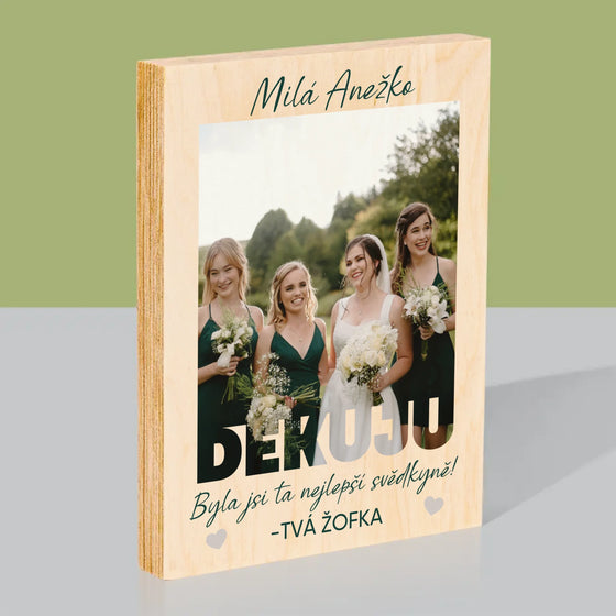 489 KčJednotková cena /Není k dispoziciFotka A Textem: Svědkyně Na Jeden Den - Tisk na dřevo - vertikální