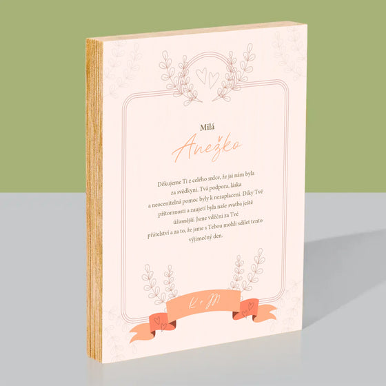 489 KčJednotková cena /Není k dispoziciJméno A Nápis: Poděkování Pro Svědkyni - Tisk na dřevo - vertikální