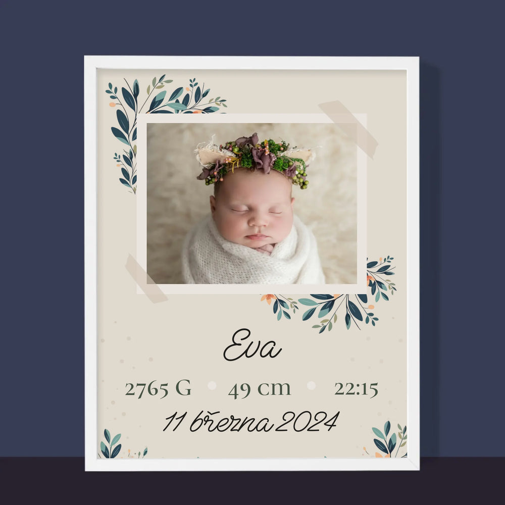 Údaje O Narození Ditěte: Údaje O Narození Květiny - Tisk v rámečku