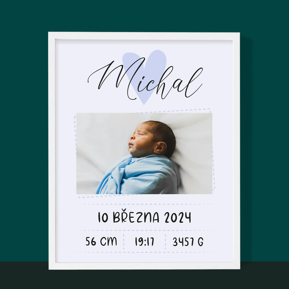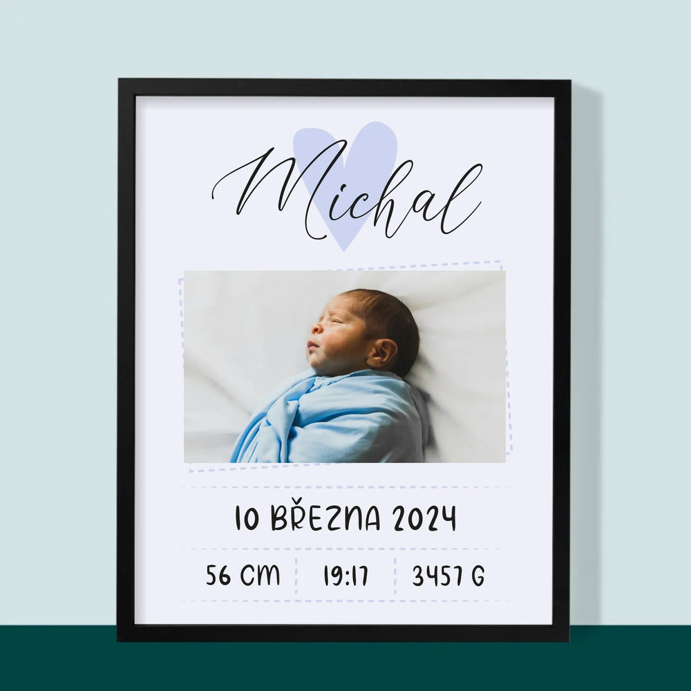 Údaje O Narození Ditěte: Údaje O Narození Srdce Chlapec - Tisk v rámečku