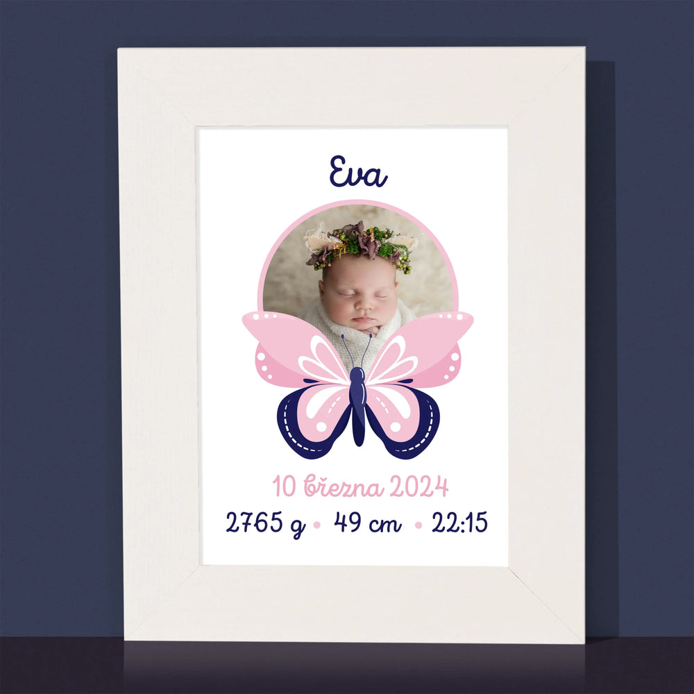 Údaje O Narození Ditěte: Rodný List Motýlek - Fotorámeček - vertikální