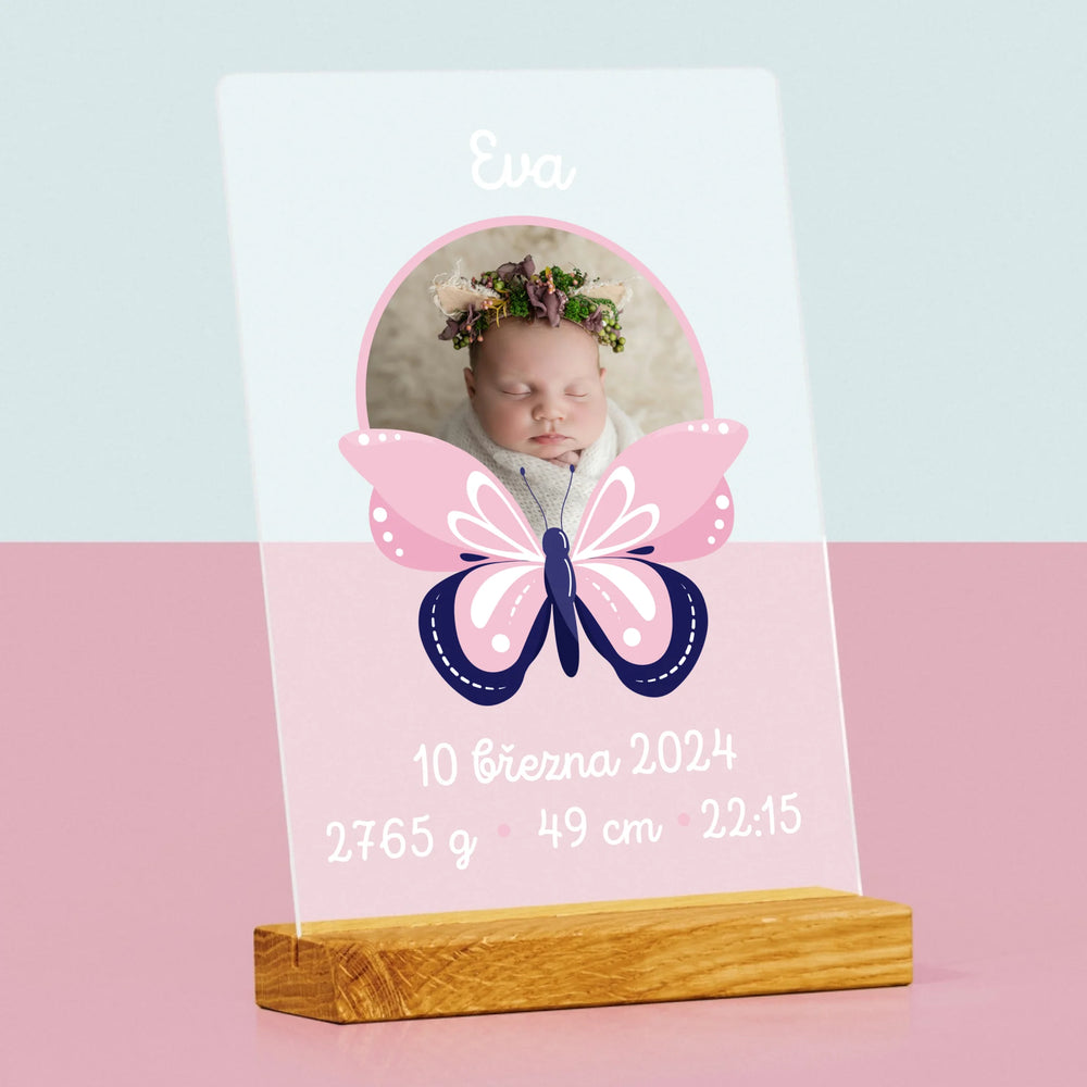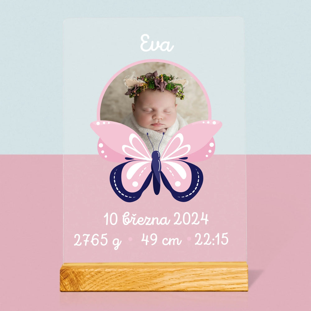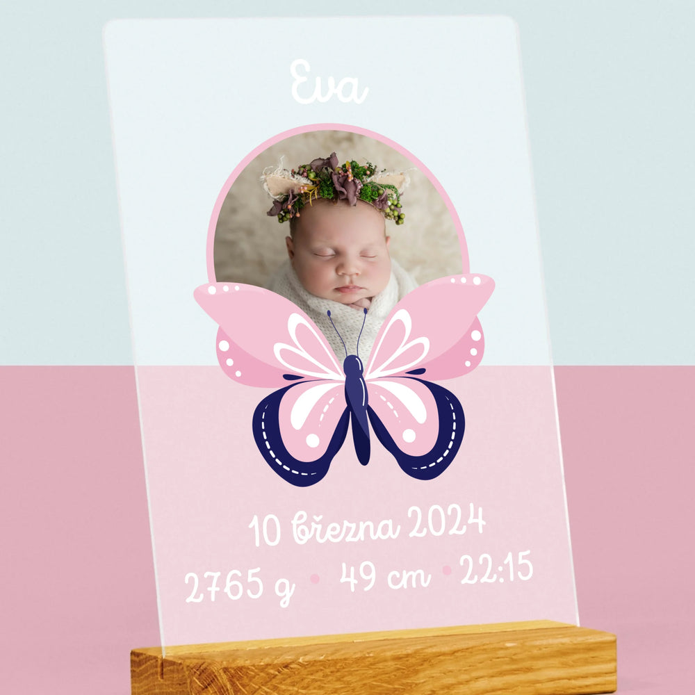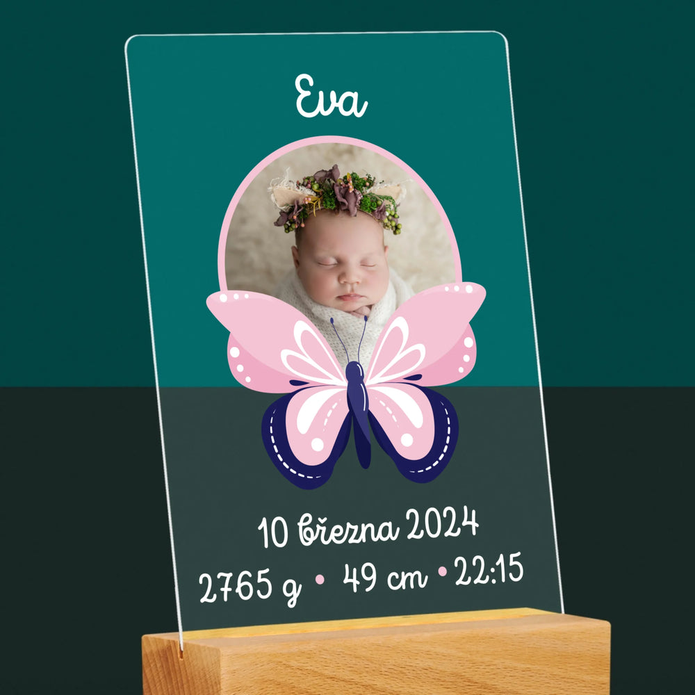 Údaje O Narození Ditěte: Rodný List Motýlek - Tisk na akrylovém skle LED