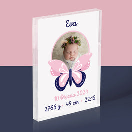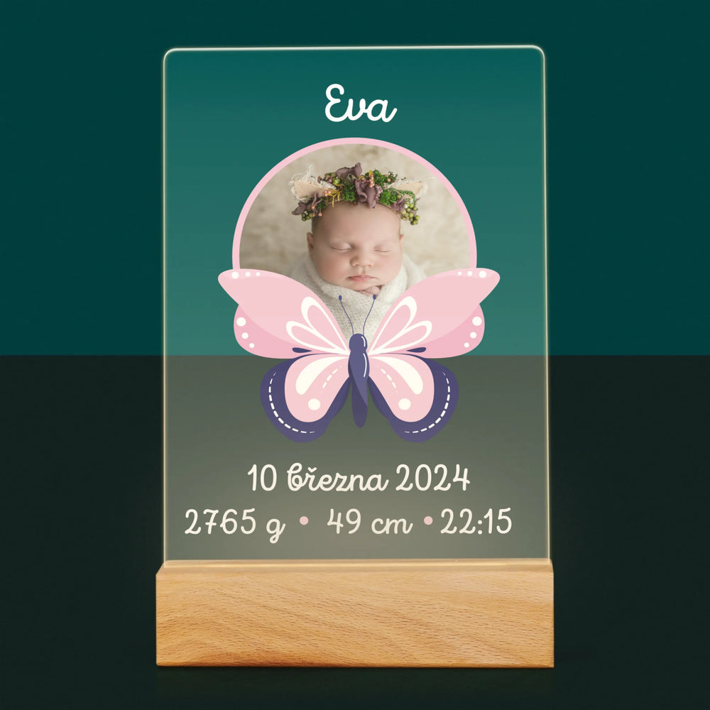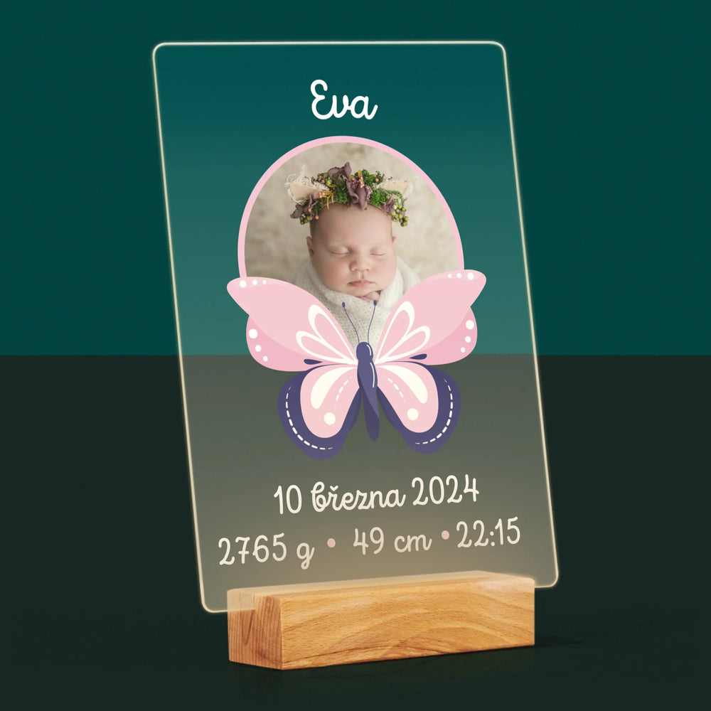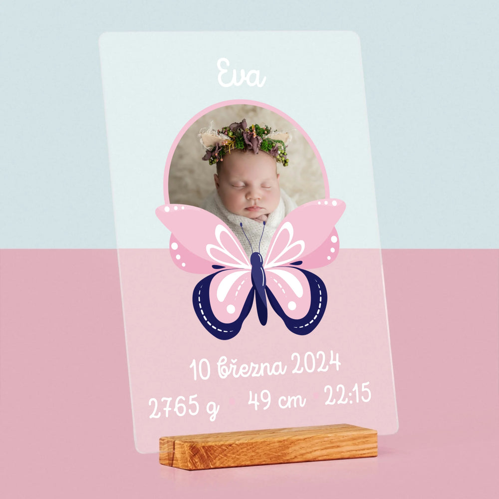 Údaje O Narození Ditěte: Rodný List Motýlek - Tisk na akrylovém skle LED