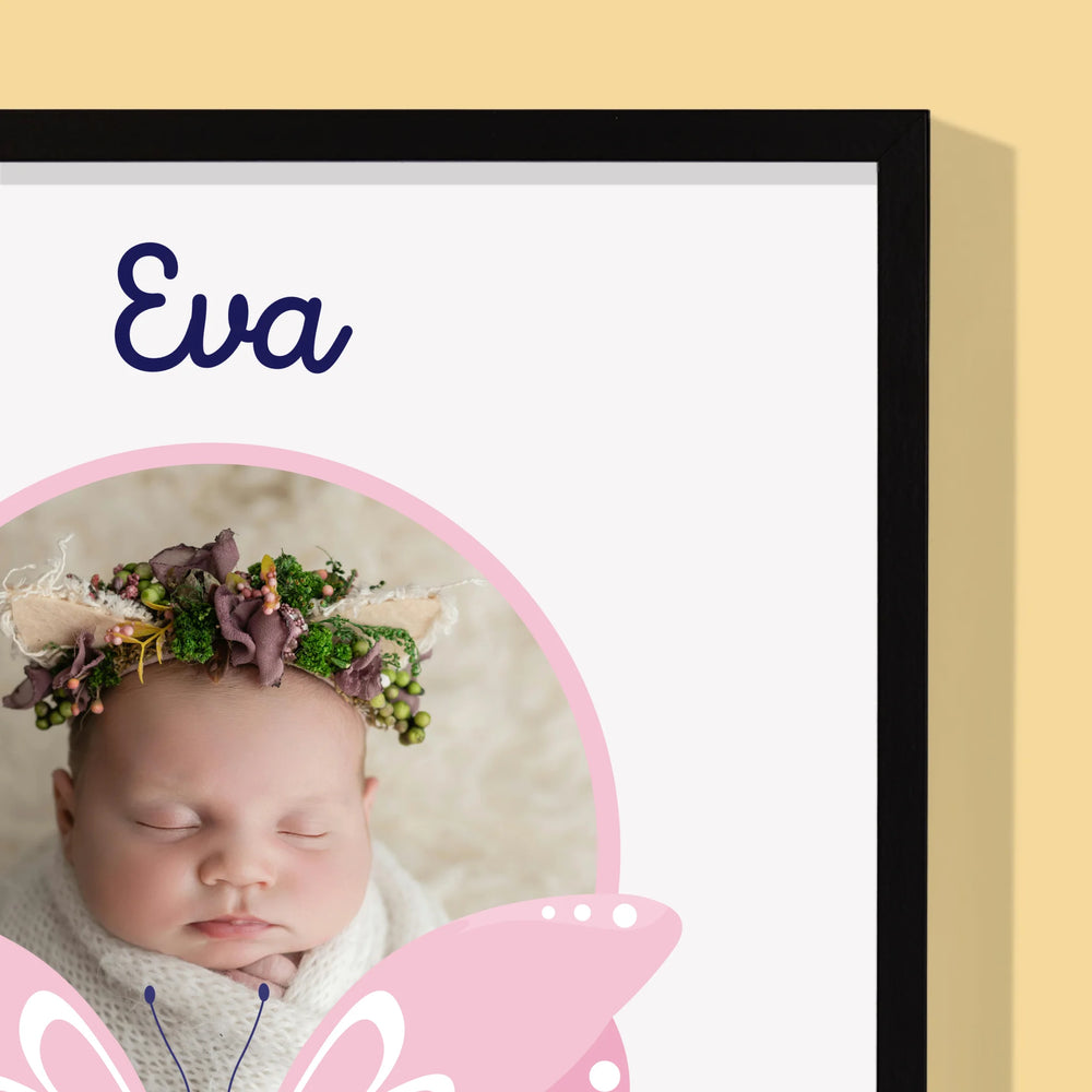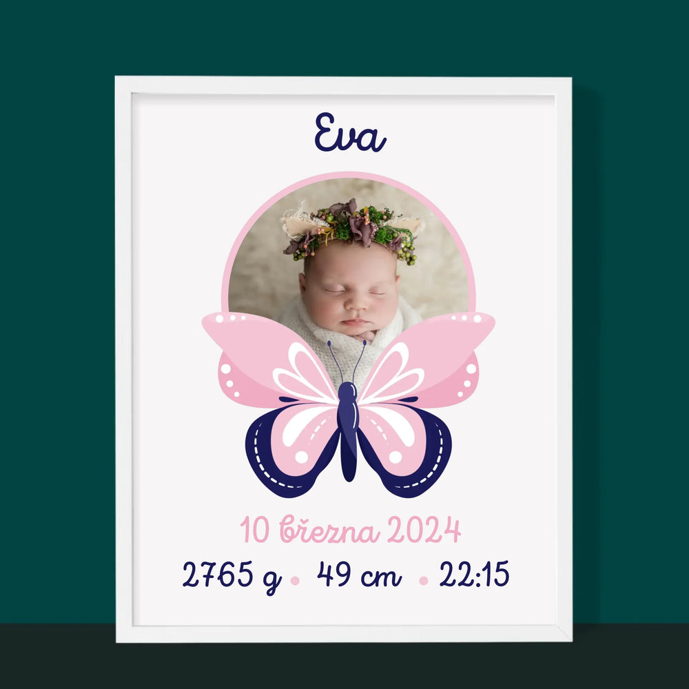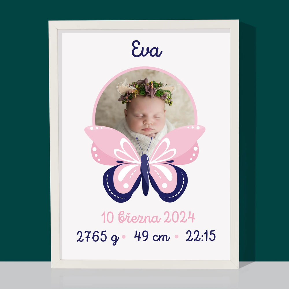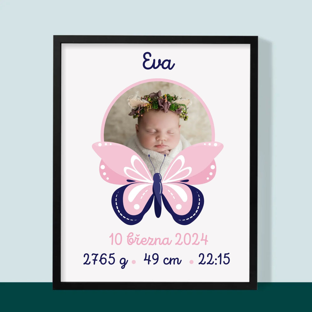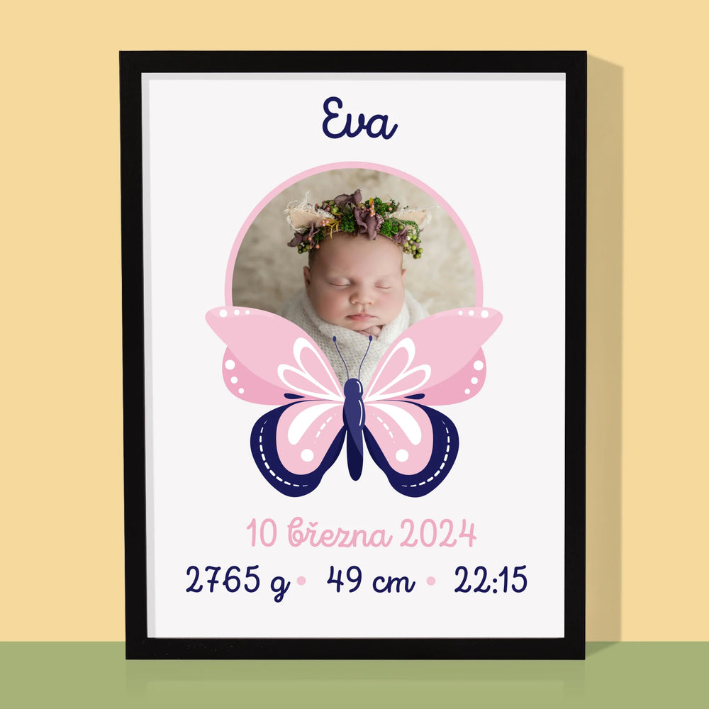 Údaje O Narození Ditěte: Rodný List Motýlek - Tisk v rámečku