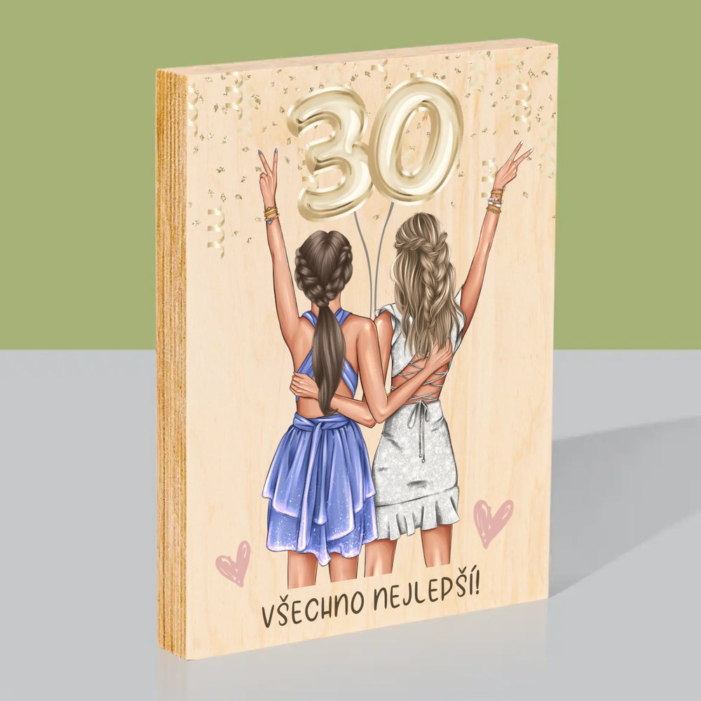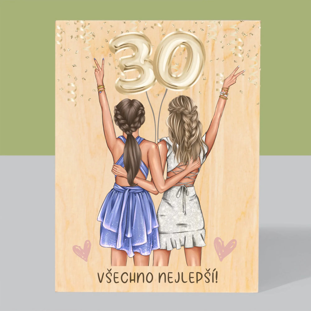 Designér Postav: Kamarádky Třicátiny - Tisk na dřevo - vertikální