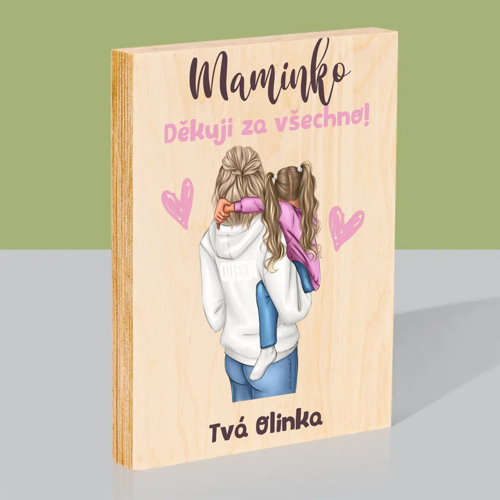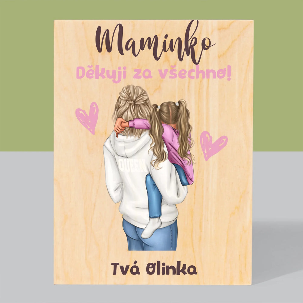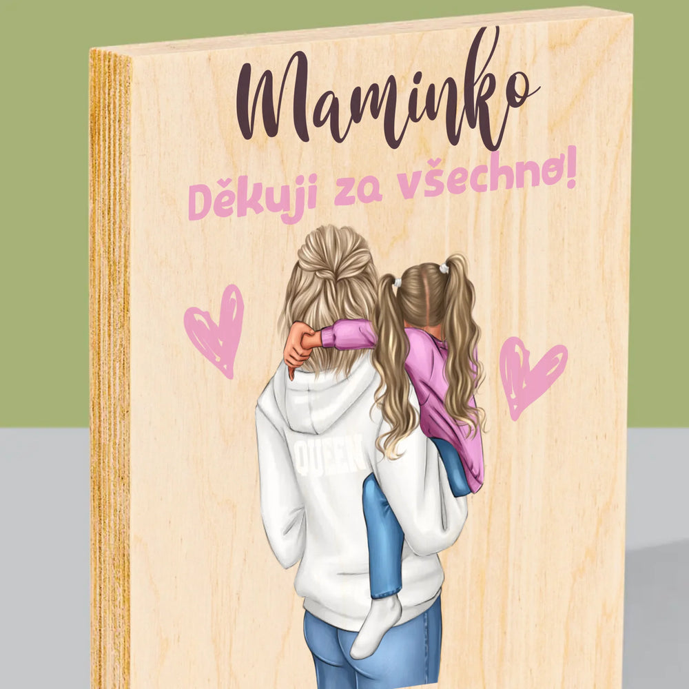 Designér Postav: Máma S Dítětem - Tisk na dřevo - vertikální