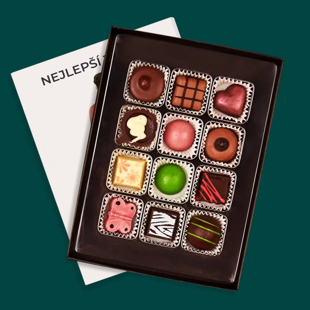 Lahodné belgické čokoládové pralinky v elegantní Krabici s naší vlastní personalizací.