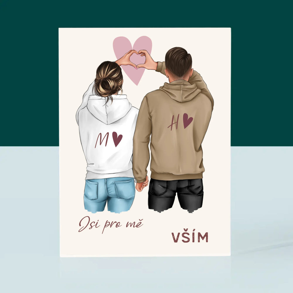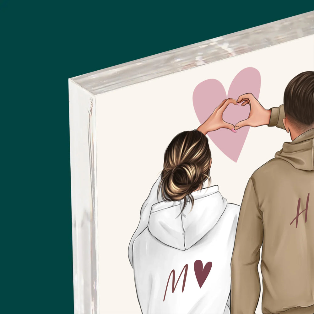Designér Postav: Pár Srdce - Akrylový blok - vertikální