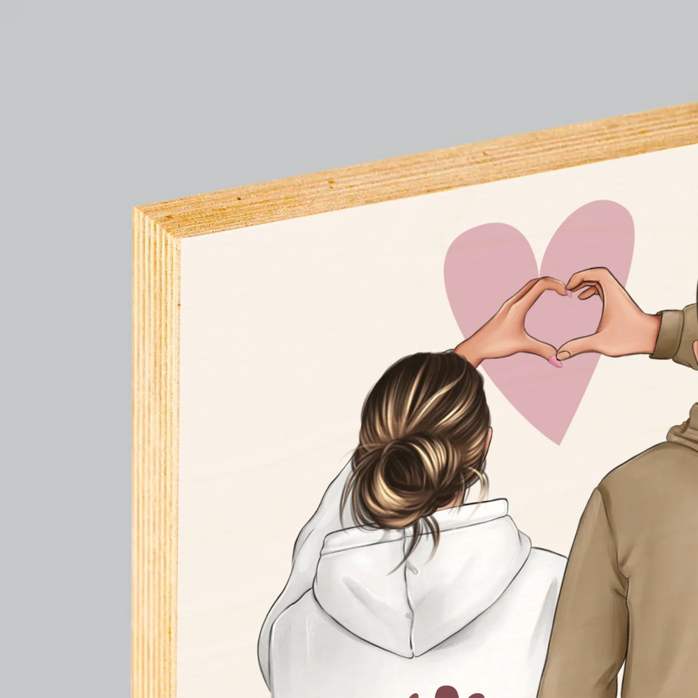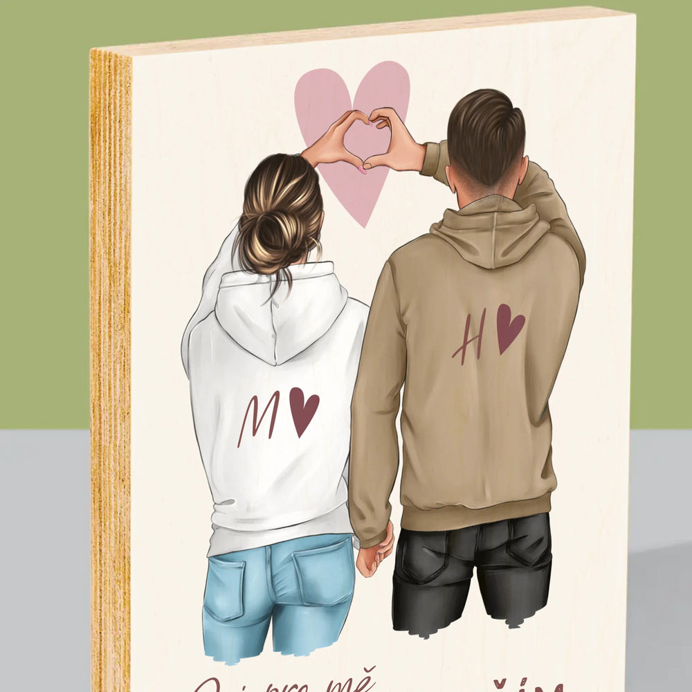Designér Postav: Pár Srdce - Tisk na dřevo - vertikální