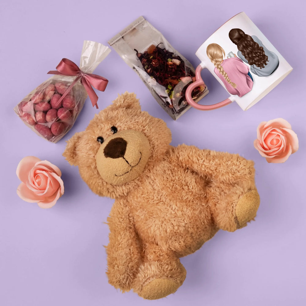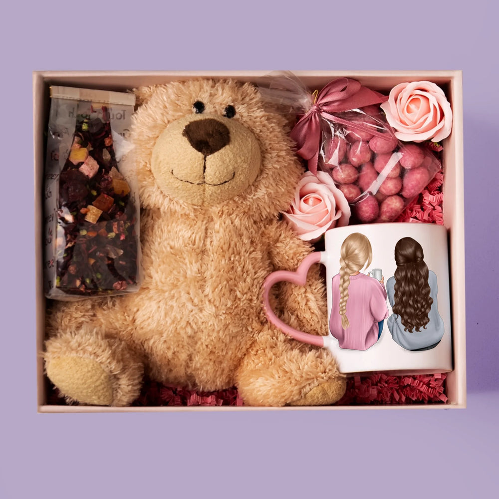 Designér Postav: Přítelkyně - Dárková sada s hrnkem, plyšovým medvídkem a sladkostmi