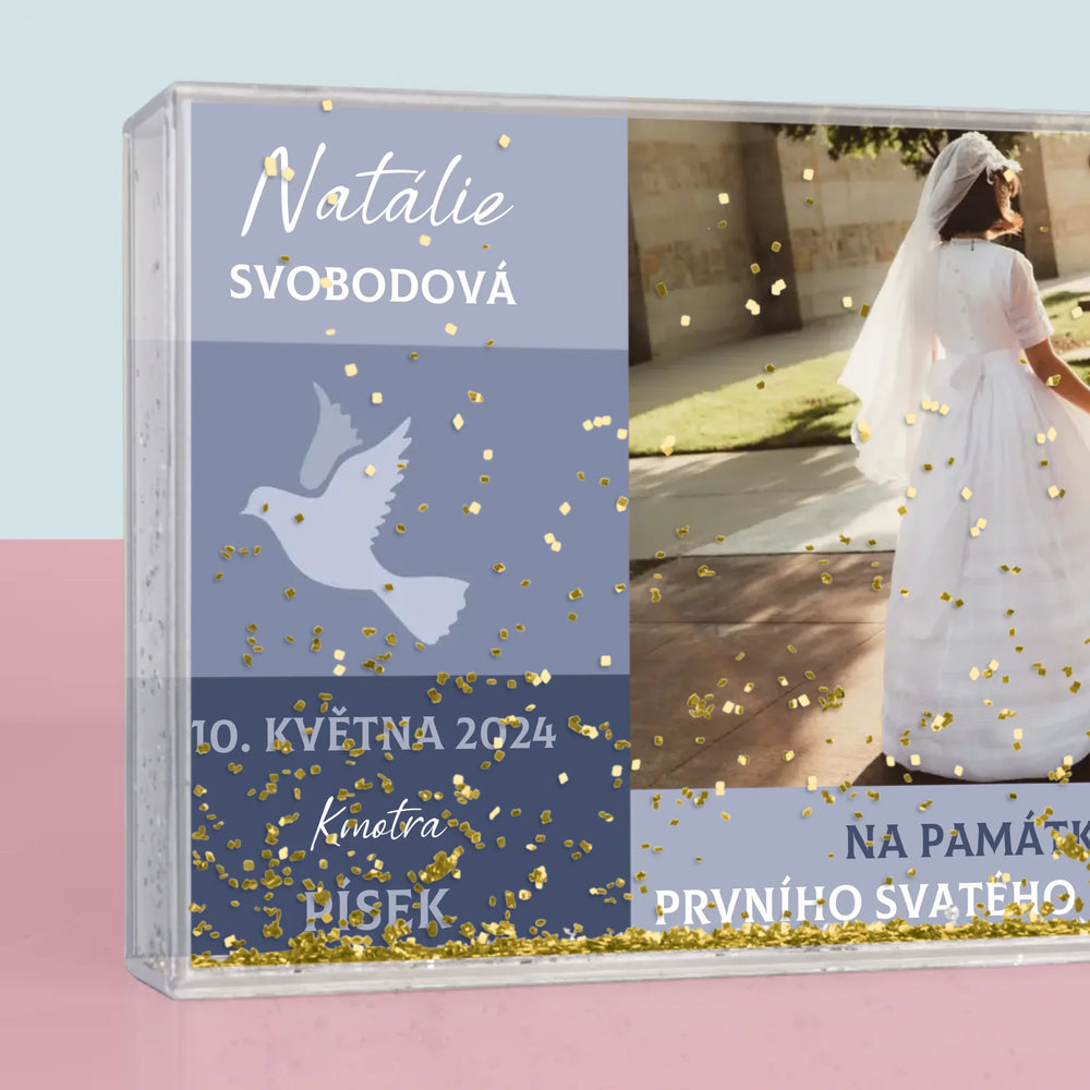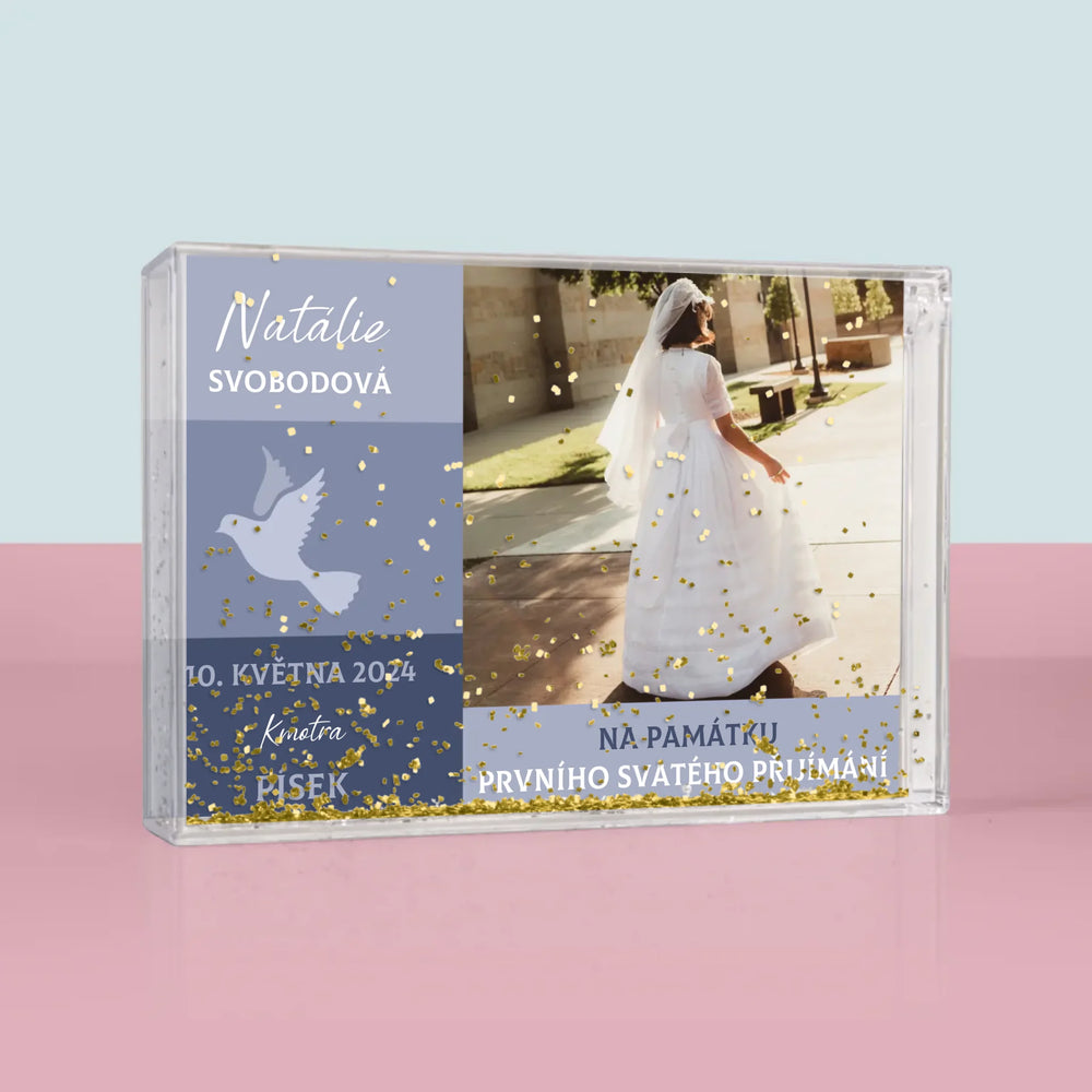Fotka A Textem: Andělíčku Přijímání - Sněžící fotorámeček