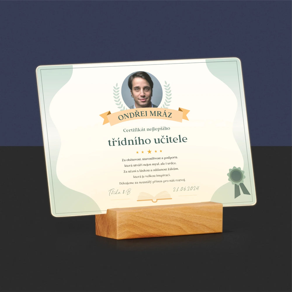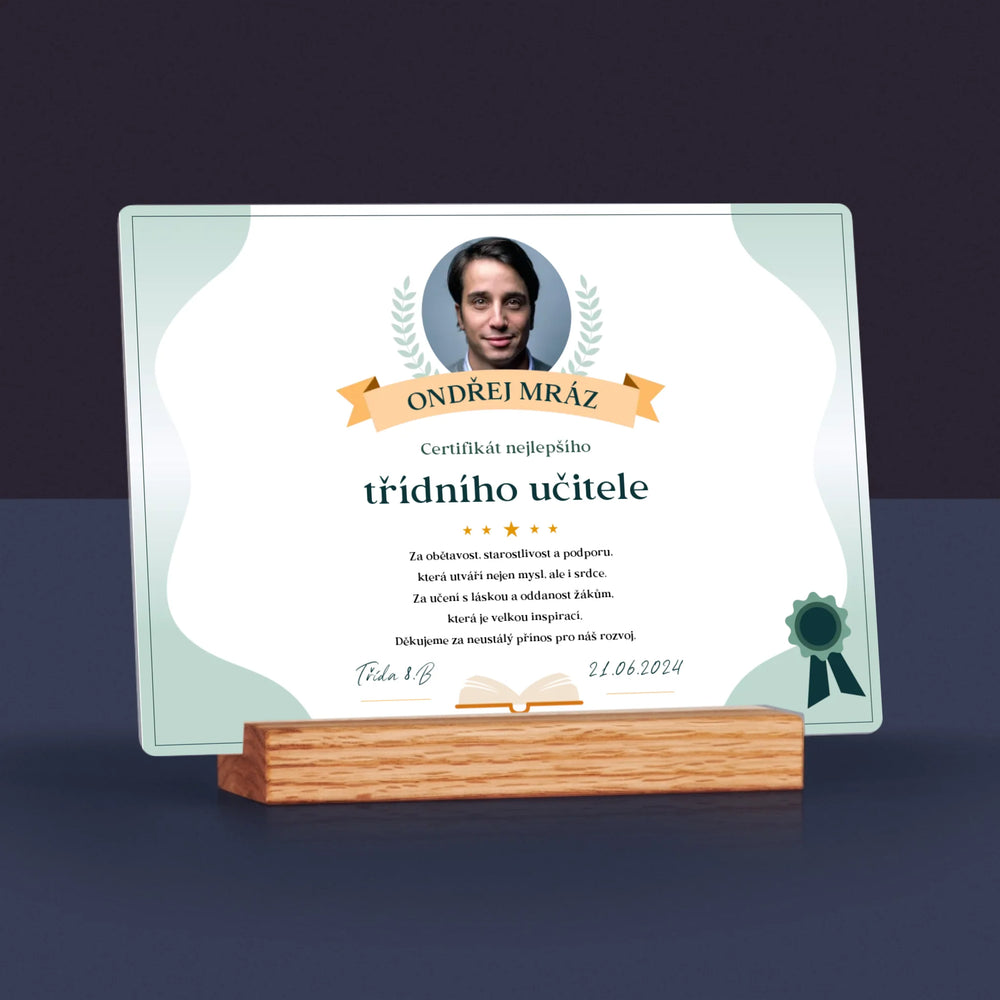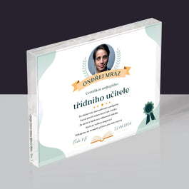 Fotka A Textem: Certifikát Nejlepšího Třídního Učitele - Tisk na akrylovém skle
