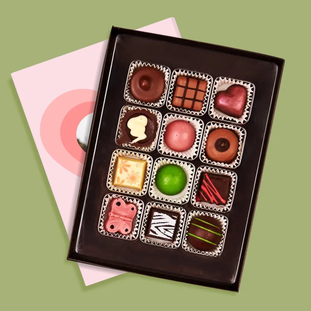 • Lahodné belgické čokoládové pralinky v elegantní Krabici s naší vlastní personalizací.