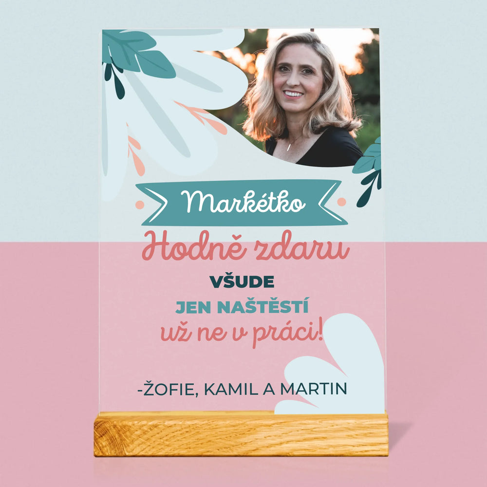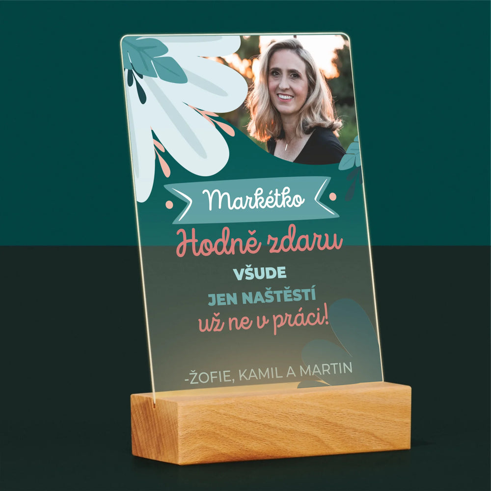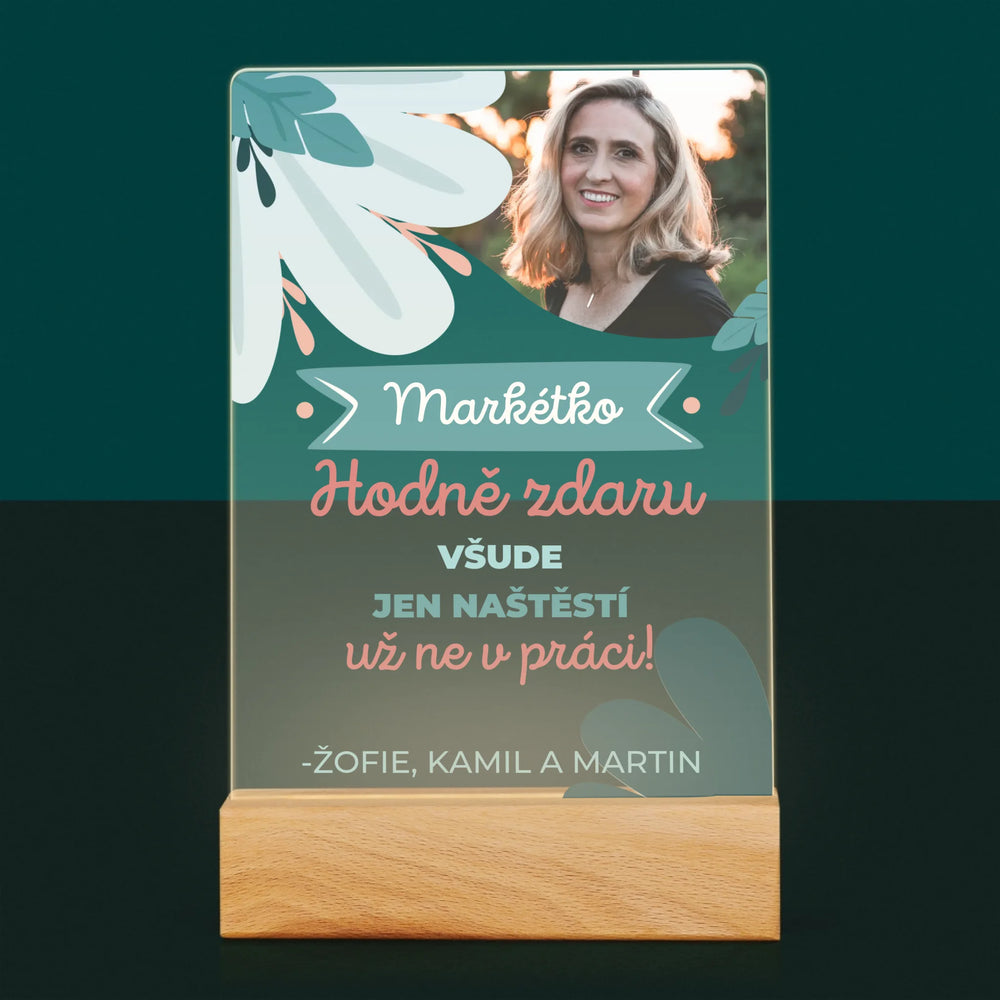 Fotka A Textem: Hodně Zdaru Nikoli V Práci - Tisk na akrylátové sklo LED