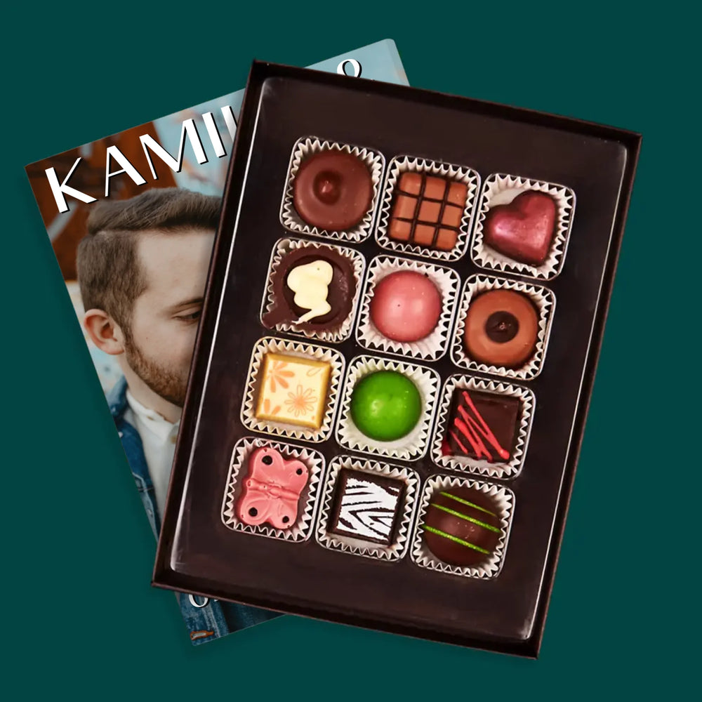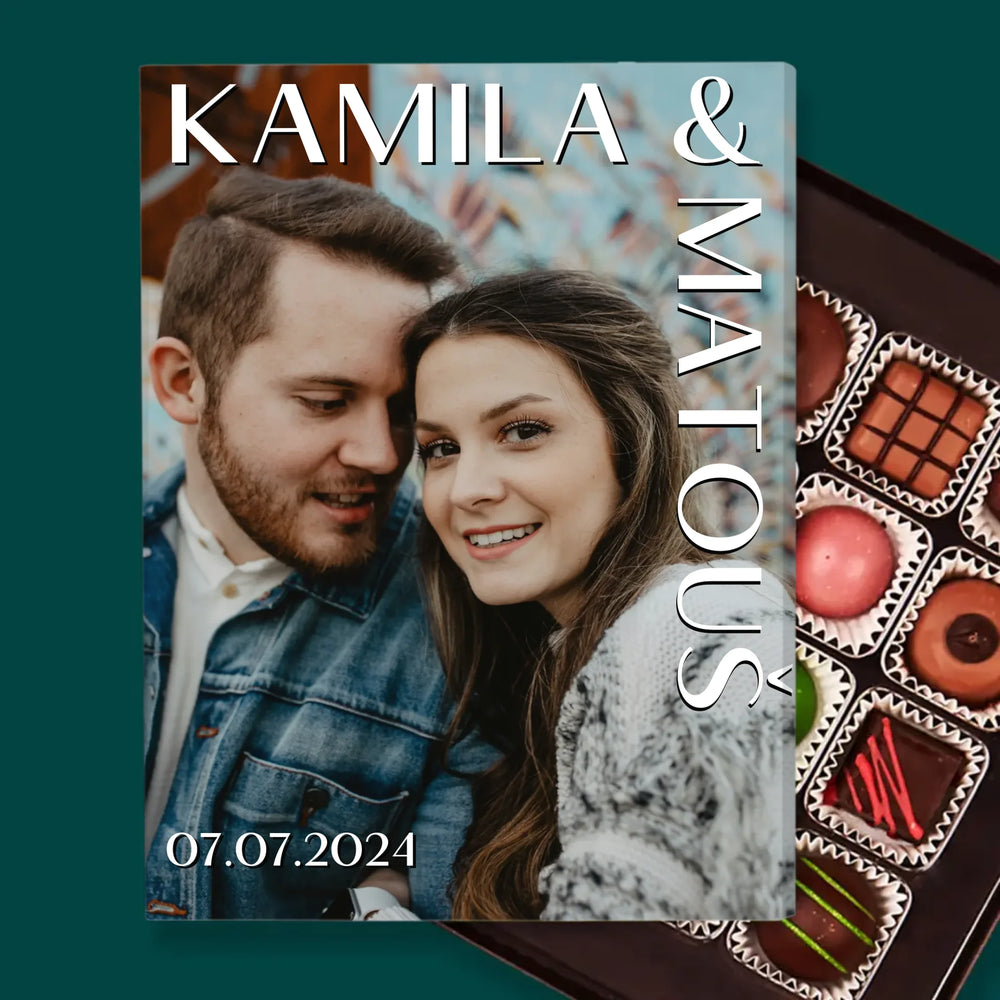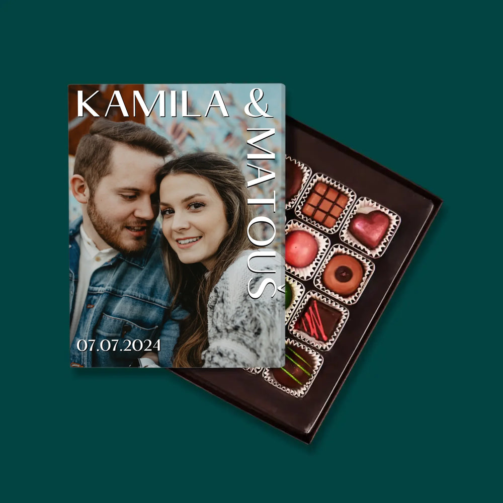 Lahodné belgické čokoládové pralinky v elegantní Krabici s naší vlastní personalizací.