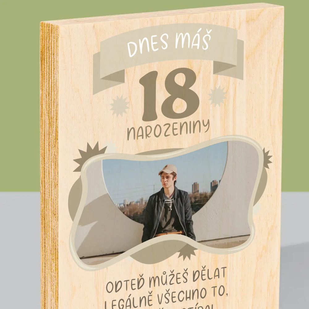 Fotka S Textem: Legální Narozeniny - Tisk na dřevo - vertikální