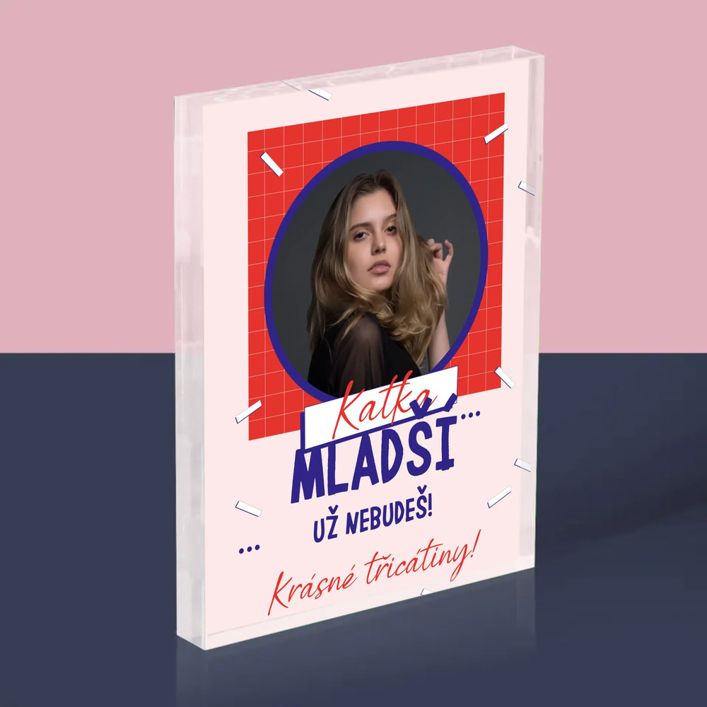 Fotka S Textem: Mladší Nebudeš - Akrylový blok - vertikální