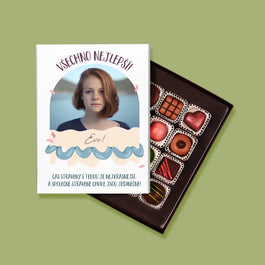 Lahodné belgické čokoládové pralinky v elegantní Krabici s naší vlastní personalizací.