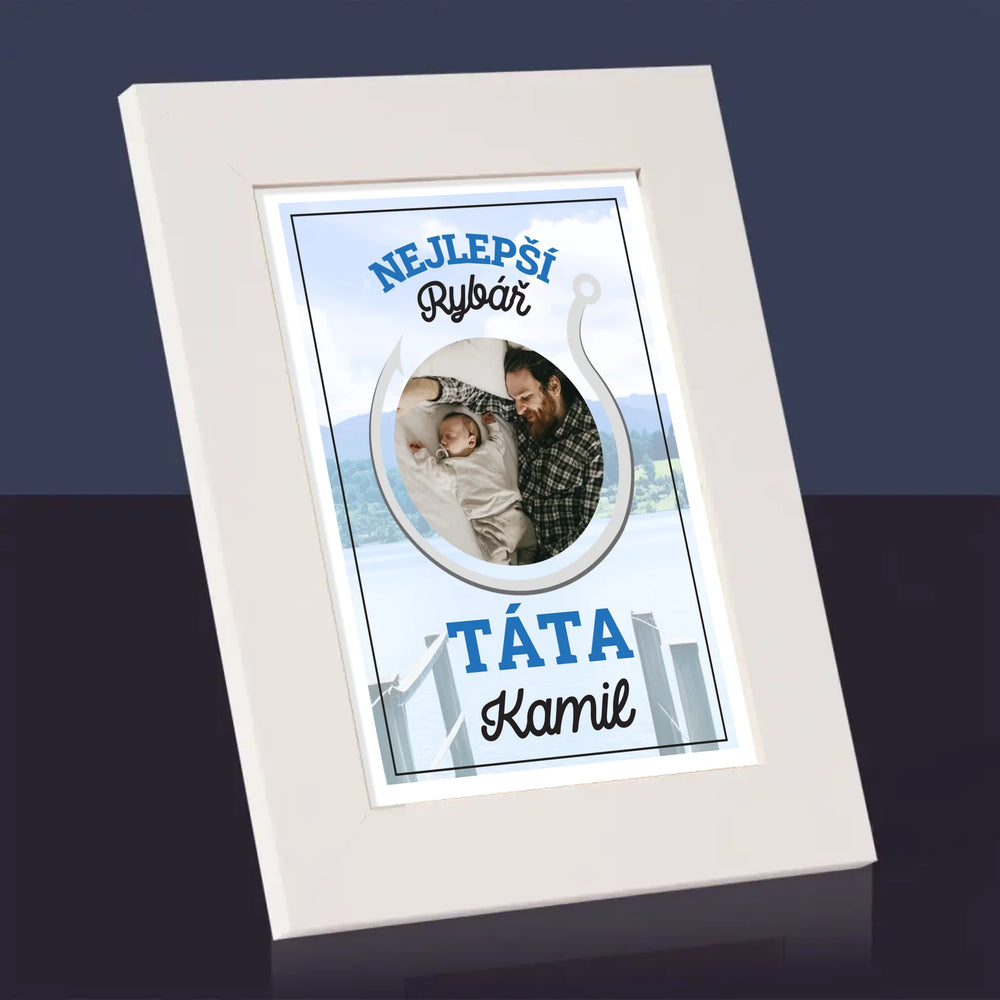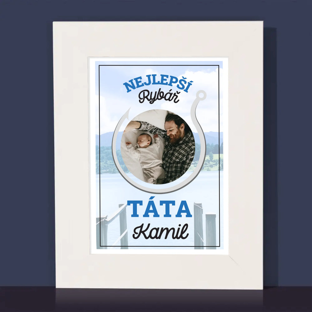 Fotka S Textem: Nejlepší Rybář Táta - Fotorámeček - vertikální
