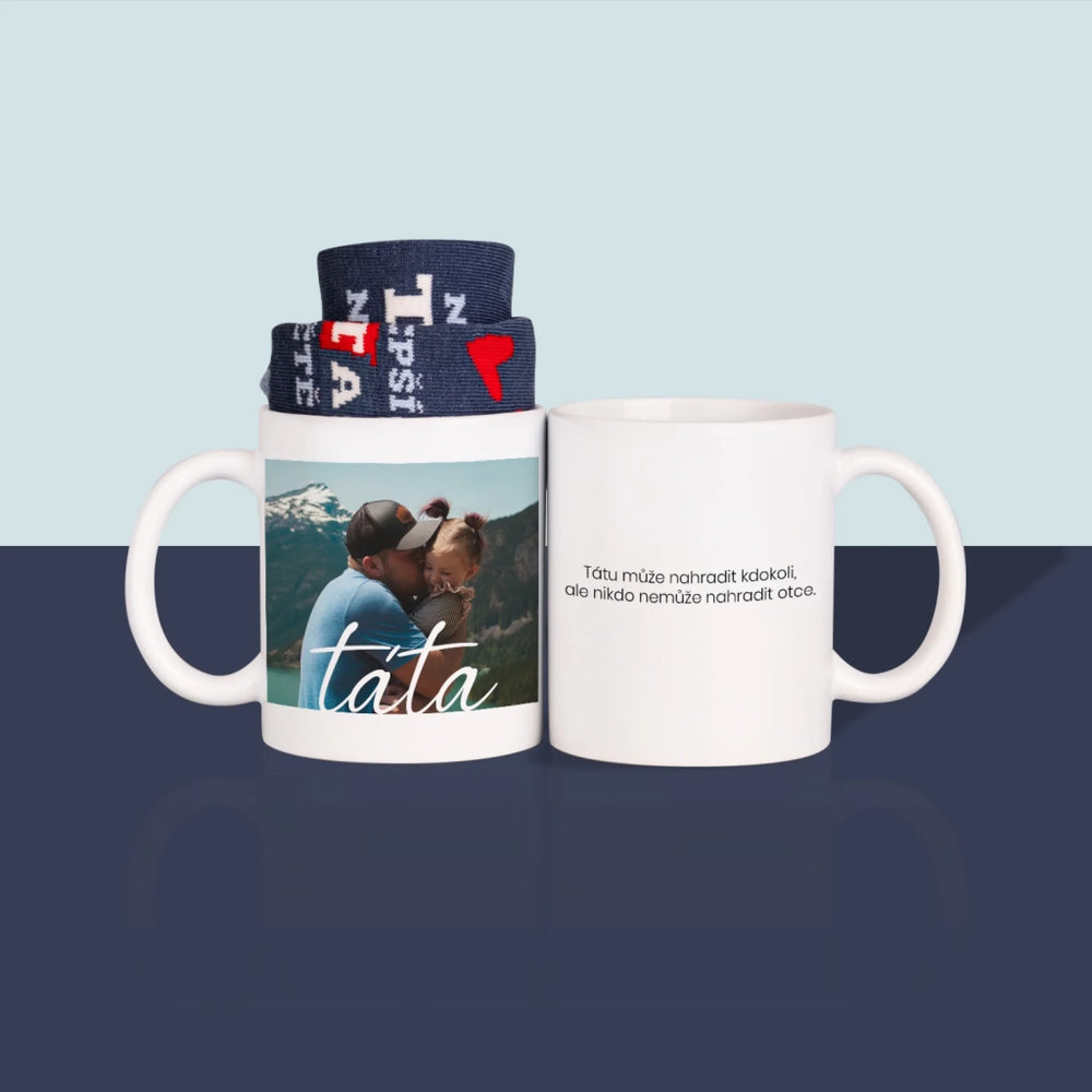 Kvalitní hrnek s personalizací podle vašeho výběru a ponožkami pro tátu uvnitř.