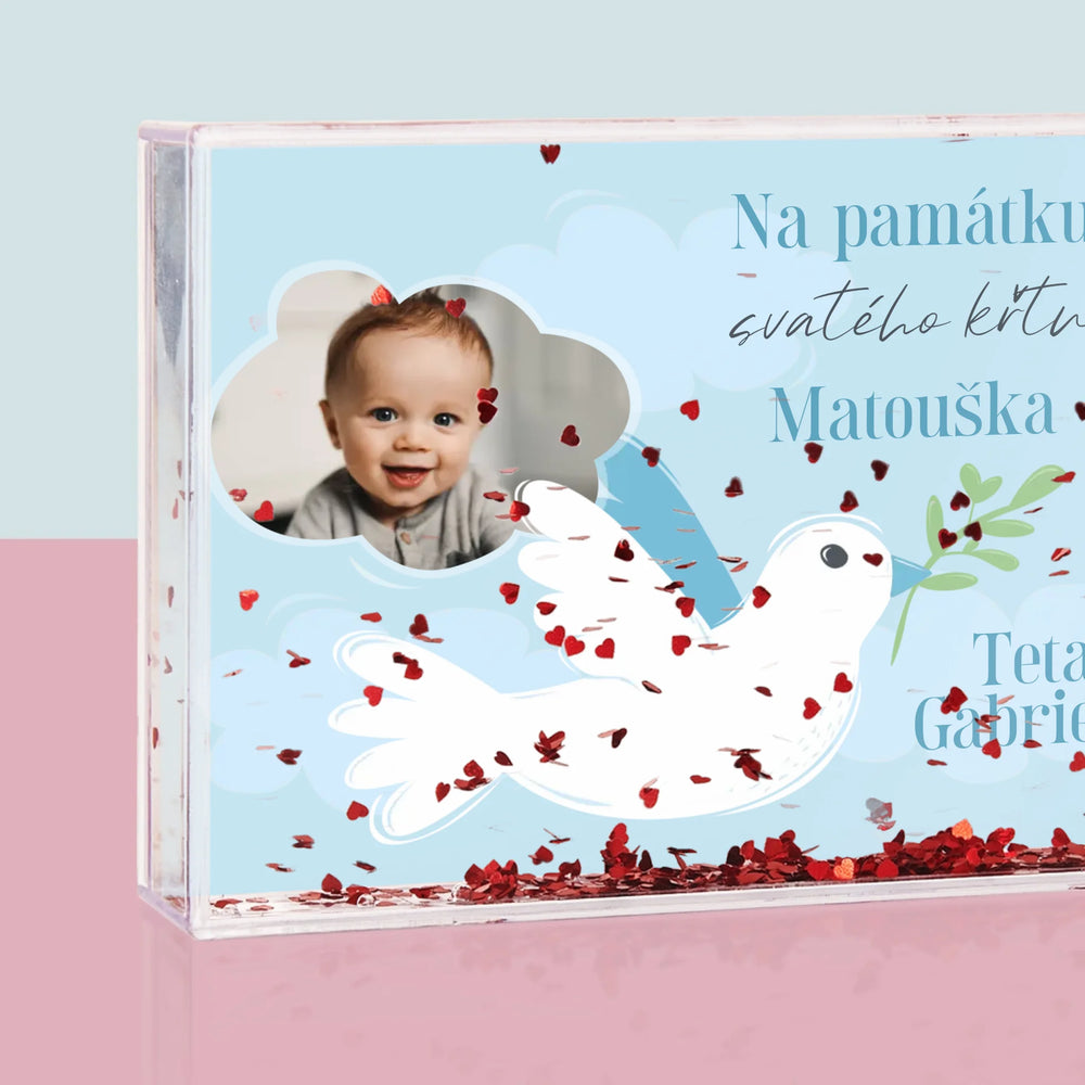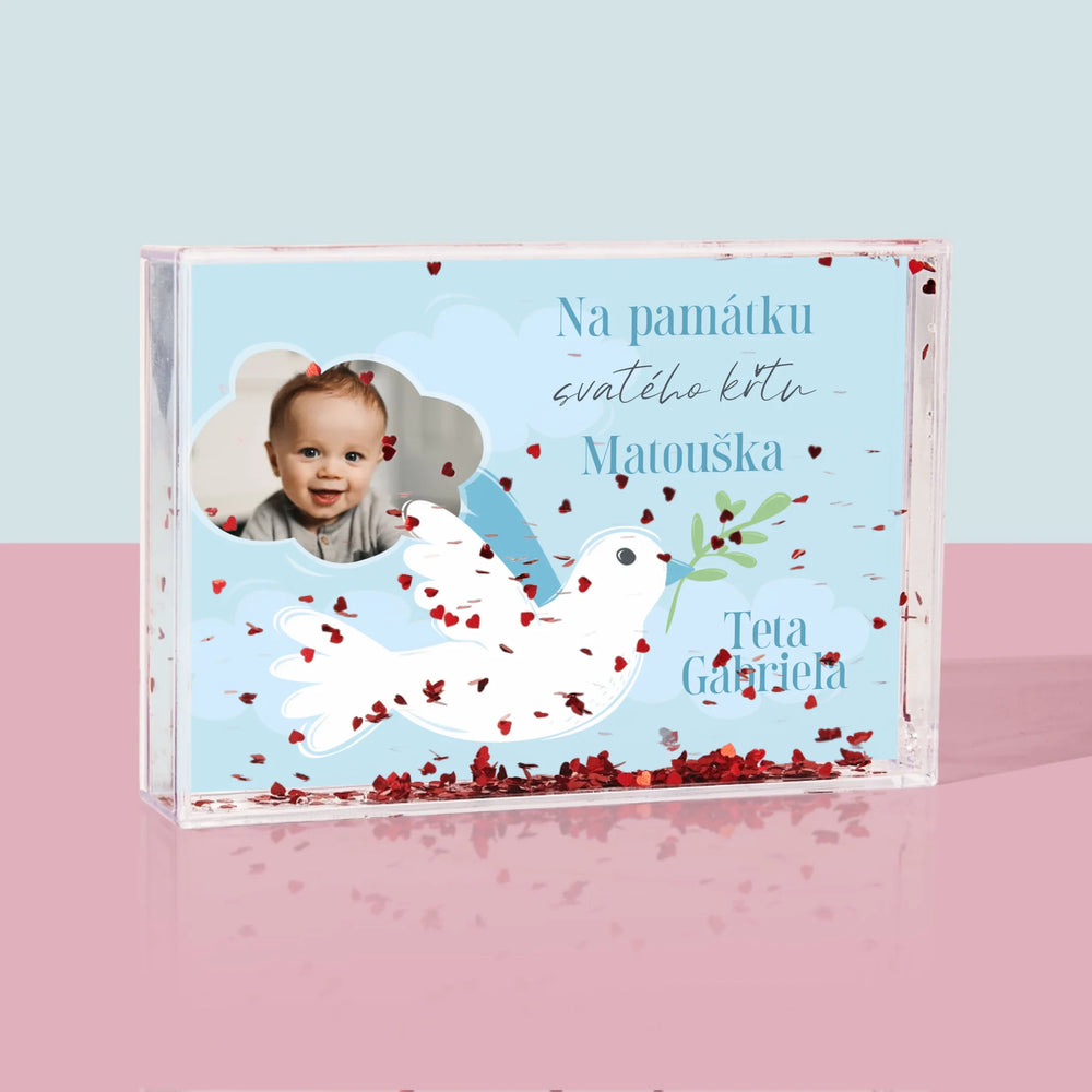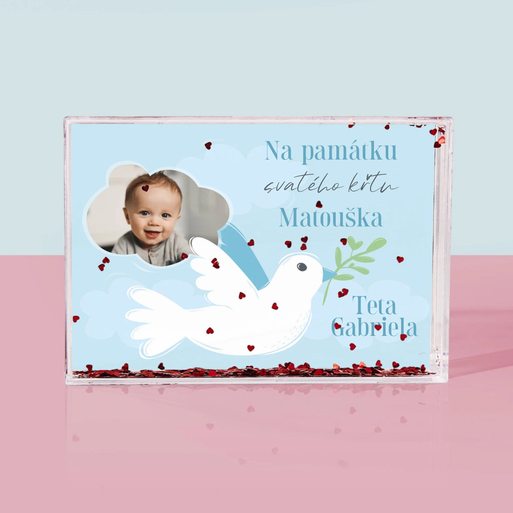Fotka A Textem: Památka Na Křest Holoubek - Sněžící fotorámeček