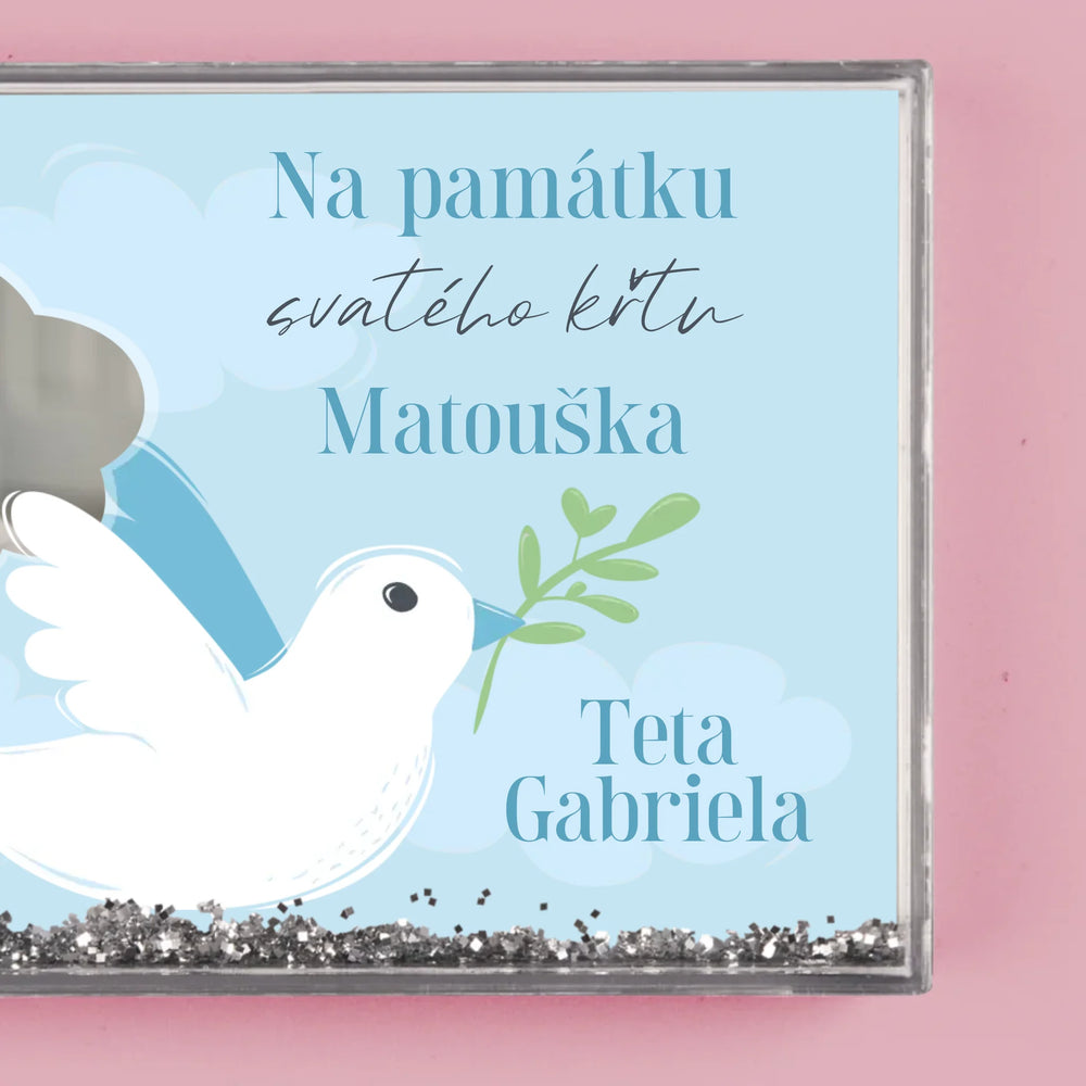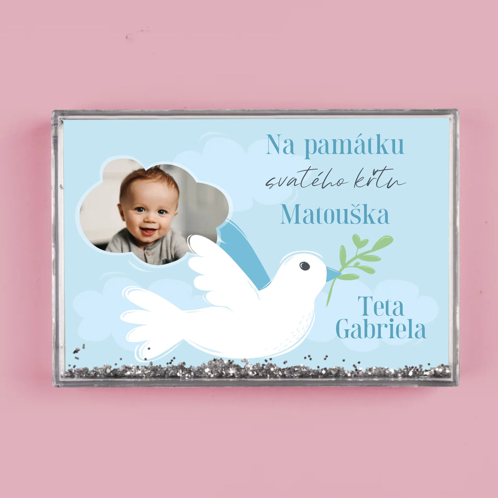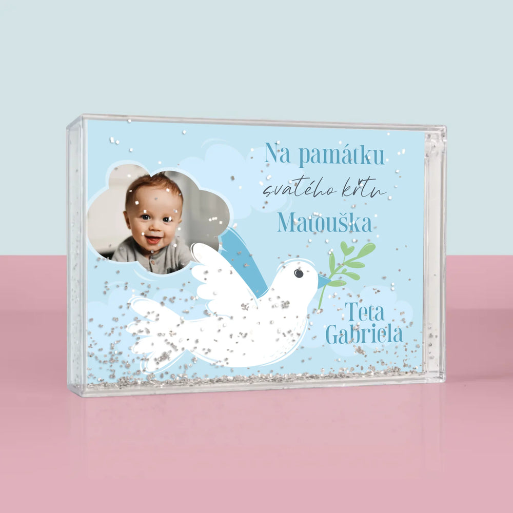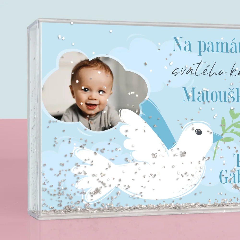 Fotka A Textem: Památka Na Křest Holoubek - Sněžící fotorámeček