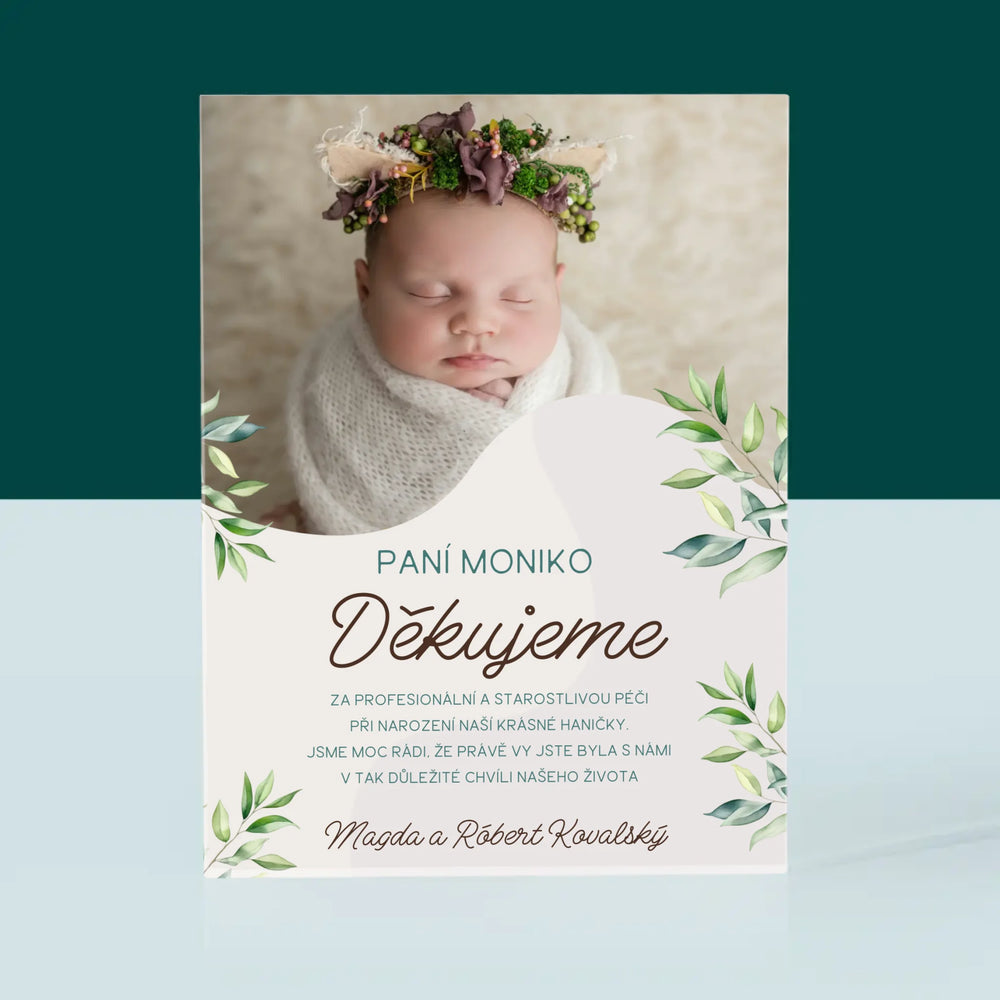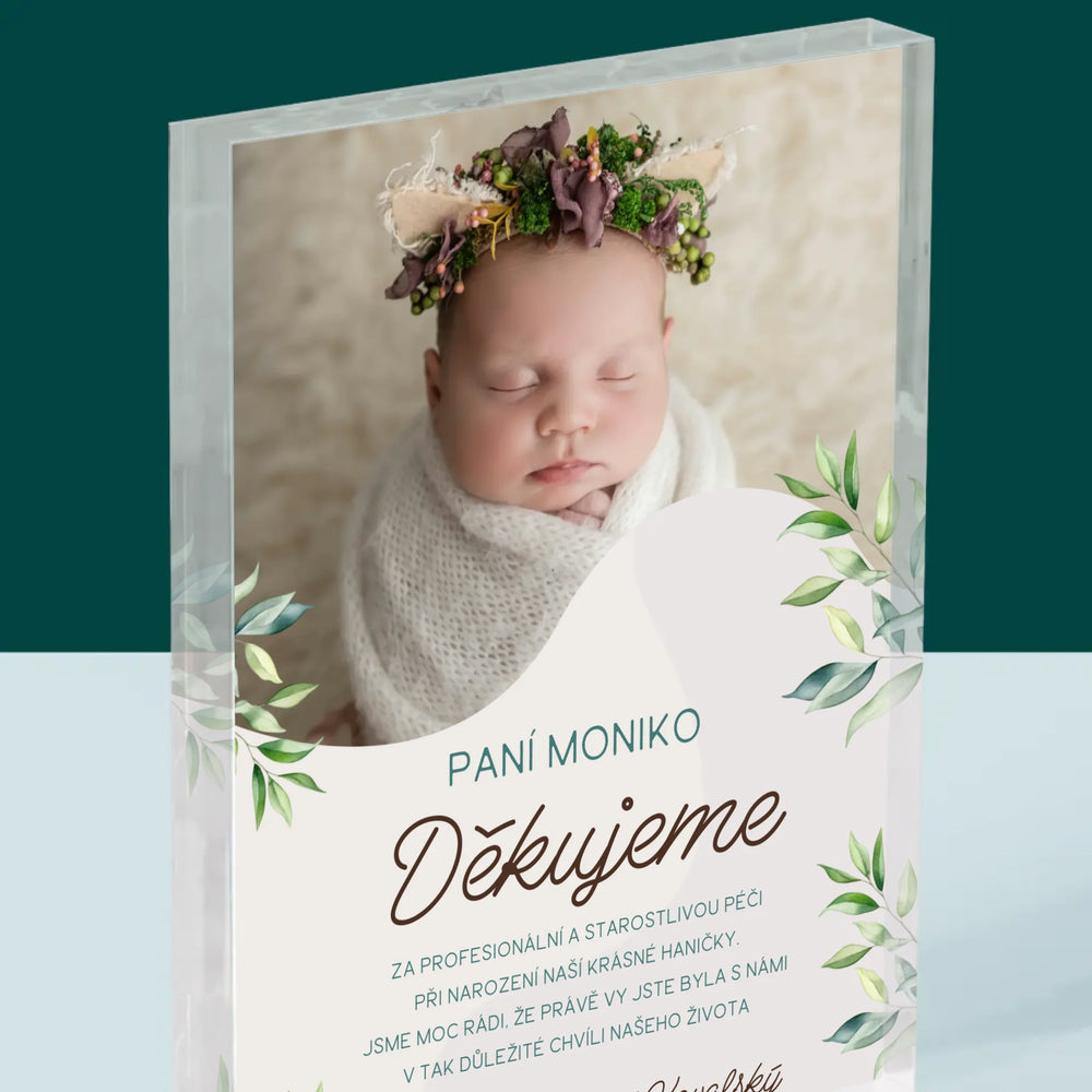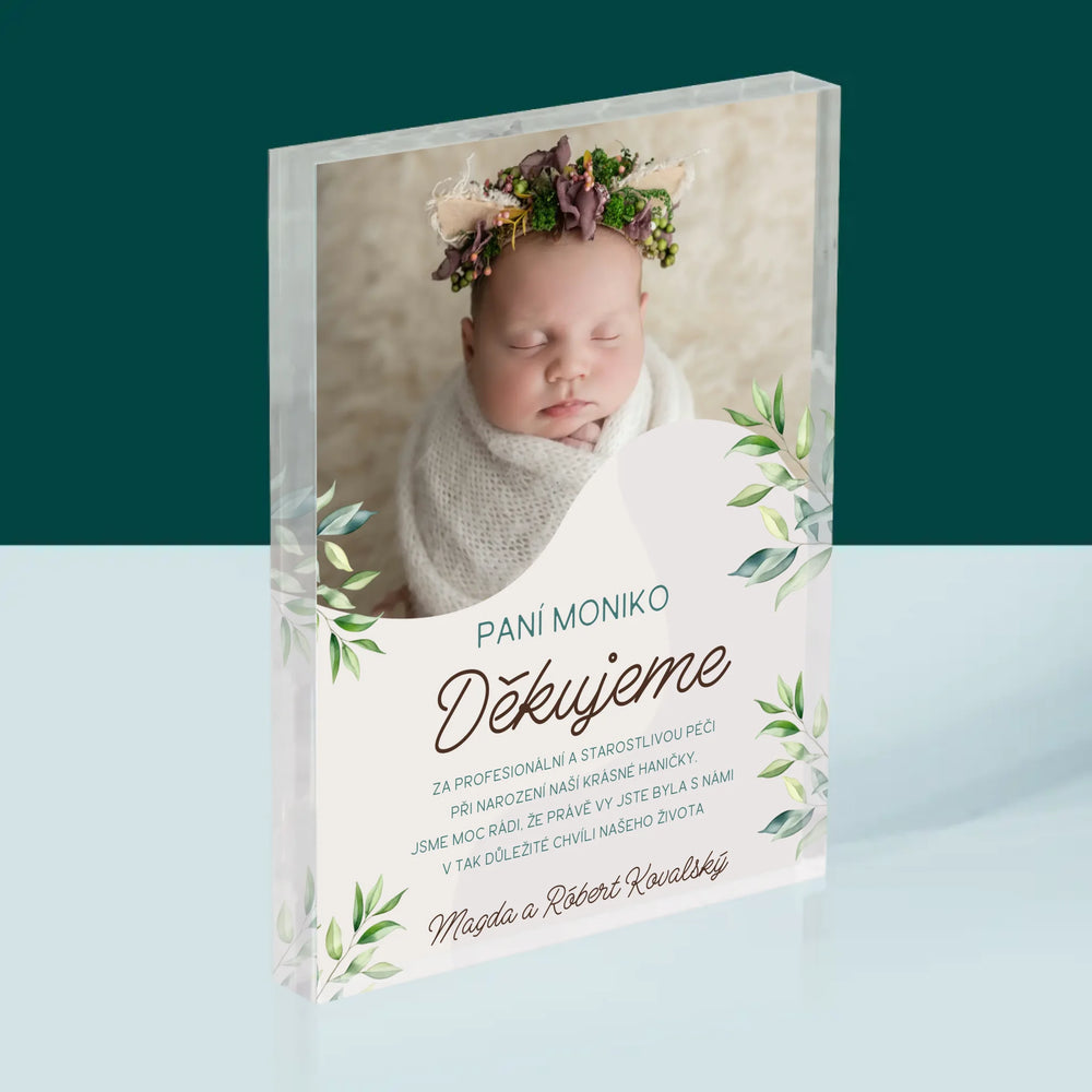 Fotka S Textem: Poděkování Porodní Asistentce - Akrylový blok - vertikální