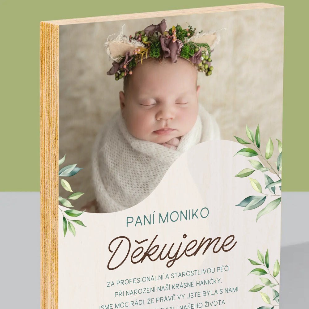 Fotka S Textem: Poděkování Porodní Asistentce - Tisk na dřevo - vertikální