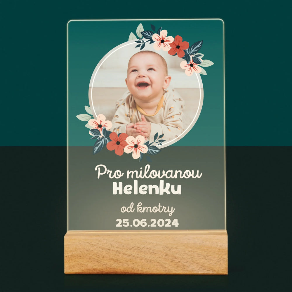 Fotka A Textem: Pro Dítě Od Kmotrů - Tisk na akrylátové sklo LED